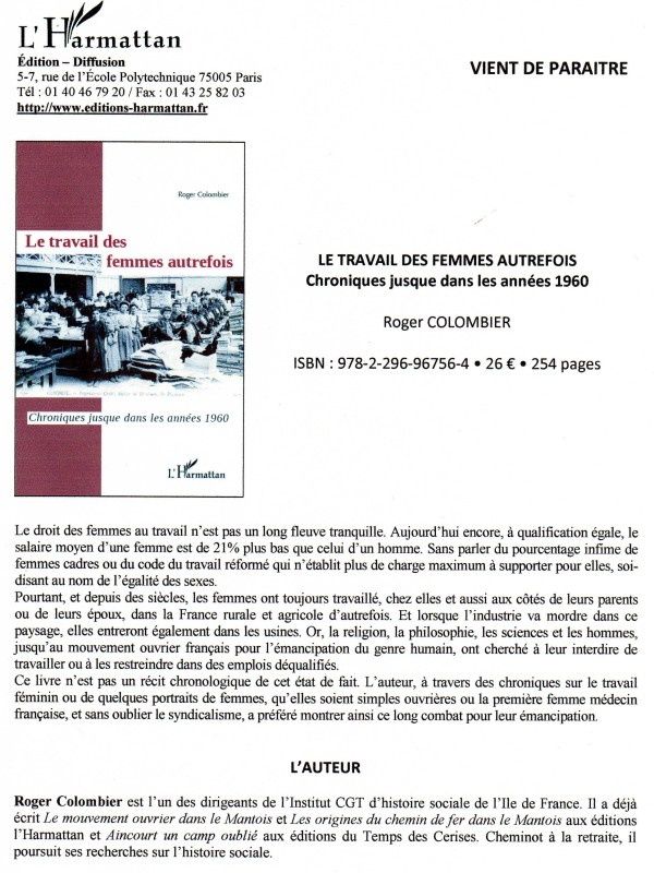 Extraits de mon ouvrage Le travail des femmes autrefois, chez l'Harmattan