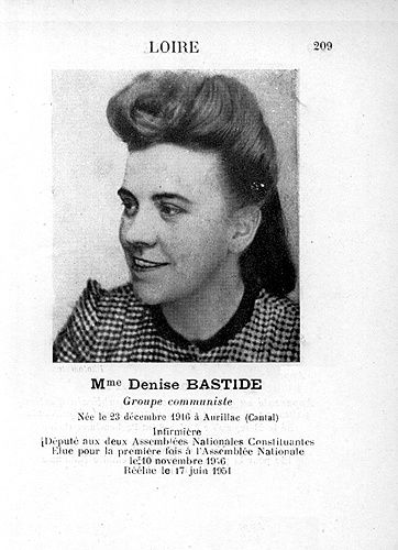 Les premières femmes députées sont élues le 21 octobre 1945. Elles ne sont cependant que 33 sur 586 représentants de la nation, dont 17 pour le PCF, 6 pour la SFIO, 9 pour la droite du MRP et 1 pour les divers droite.