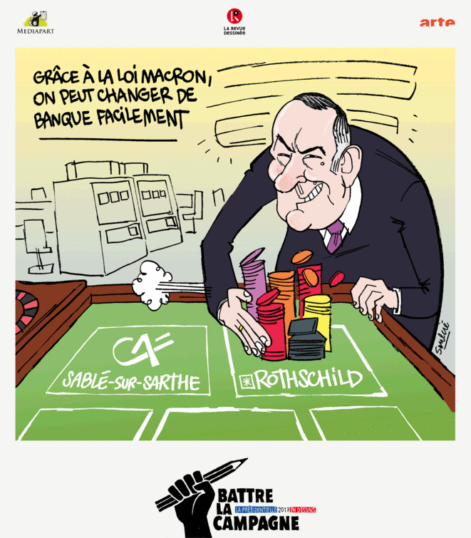 Pour ceux qui auraient égaré leur boussole. Au milieu, François Hollande, président socialiste de la République depuis mai 2012, celui qui avait pour ennemi la finance. A sa droite, Emmanuel Macron, banquier d'affaires chez Rothschild,...